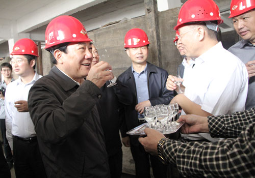 曹市长一行先后来到施工现场、勾兑车间,参观了综合车间、地下酒库等地,每到一处,都详细了解企业的建设情况、发展规划及生产经营状况。并听取了公司领导关于酒文化馆、酒银行、酒博物馆以及未来几年的发展战略的汇报。 在勾兑车间,大家饶有兴趣地了解了有关白酒生产加工工艺流程,并现场品尝了公司新研发的优质酒以及储存30多年的原浆酒,他们对公司精湛的制作工艺,独特的酿酒风格以及绵柔甘洌,余香悠长的白酒给予了很高的评价。 调研结束后,曹市长高兴地说,富平春公司的宏伟蓝图和发展前景使我感到欣喜,它是漯河市的一大亮点、一张名片,希望富平春酒业公司加强科技进步,加快创新步伐,努力打造品牌效应,生产出更多的美酒奉献给广大消费者,为舞阳乃至漯河市的经济发展做出新的更大的贡献。