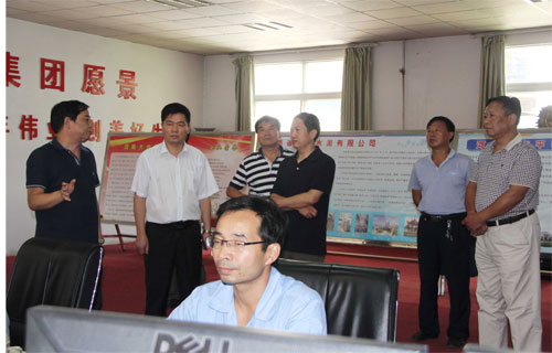 在中控室,集团副总裁李保录向各位领导汇报了大地公司在工艺、技术装备、环保投入、客户服务等方面所做的工作。大家对大地公司在环保方面的超前性投入表示赞赏。