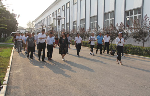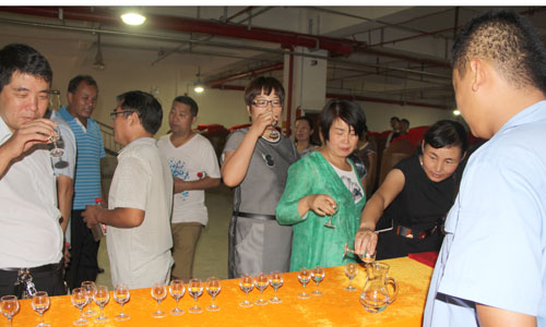 宝丰县二中教师在贾湖酒业合影留念 在贾湖酒业领导的陪同下,大家先后参观了酿酒车间、地下酒库、省级白酒检测中心、科研中心、灌装车间等地。听取了讲解员关于白酒生产工艺流程的介绍,品尝了30年以上的贾湖美酒,教师们对公司先进的工艺技术,近万平方米的地下酒库表示惊叹。对徽派仿古的园林式厂区,甘甜醇厚,余味悠长的美酒赞口不绝,大家纷纷拿出手机拍照留念。