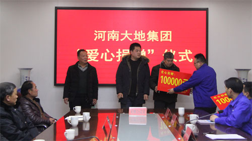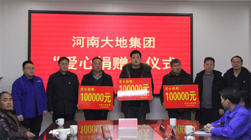 1月28日下午,星空网页版·官方站在线登入在中控三楼会议室举行“爱心捐赠”仪式。大地集团分别为大营镇蛮子营村、肖旗乡岭湾村、宝丰县观音堂滴水崖村捐赠现金10万元。