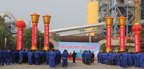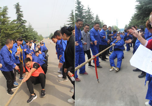 县人大副主任、县工会主席崔建利发表了热情洋溢的贺词,他对大地集团重视企业文化建设,开展形式多样的文体活动给予了高度赞赏,并希望广大职工要以本次运动会为契机,奋勇争先,超越自我,把运动场上彰显的精神转化为爱岗敬业的热情,助力大地集团“铸百年伟业,创美好生活”的宏伟愿景,为宝丰进入“四强县”,迈入全国“一百强”建功立业,增砖添瓦。 随着集团总裁王国杰一声发令枪响,大地集团第六届职工运动会正式拉开帷幕。 在第一个项目拔河比赛中,参赛队员个个精神抖擞,摩拳擦掌,随着裁判一声哨响,双方队员铆足了劲,涨红了脸,紧拉绳索,身体后倾,全力以赴,整个运动场上激情高涨,气氛热烈,欢呼声、呐喊声、加油声此伏彼起。