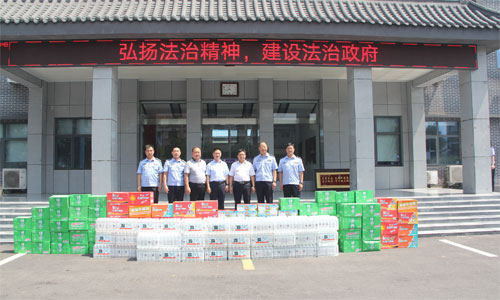 警企携手,共建平安。6月29日上午,大地集团总裁王国杰、副总裁张怀点一行先后来到宝丰县张八桥派出所、宝丰县公安局,慰问高温下坚守执勤的一线民辅警,送来了矿泉水、绿茶、方便面、火腿肠等爱心物资。县公安局党委委员、副局长李长江,党委委员、副局长李国峰,党委委员、政治处主任宋晓东,张八桥派出所所长尚小伟给予了热情接待。