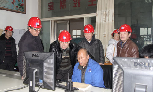 王主任一行详细了解了大地公司当前的生产经营状况,市场价格,销售形势等,并在公司总经理王永普等领导的陪同下,深入到烧成车间、余热发电站等生产一线进行实地察看。在余热发电主控室,王主任一行与工作人员进行现场交谈,了解余热发电的设备原理和工艺技术。通过参观,王主任一行对公司在水泥销售淡季,能够及时采取措施,出现经营平稳,淡季不淡的良好状况表示满意。