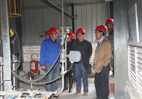 11月10日,市环保局大气办主要负责人在县环保局有关领导的陪同下,到大地公司检查干法水泥生产线脱硝技改工作。 在中控二楼接待室,检查组一行听取了集团副总裁李保录关于干法水泥生产线脱硝技改项目的情况介绍。随后,检查组一行来到1#生产线窑尾脱硝车间,现场查看工程的建设情况,了解脱硝原理及工艺流程,并详细询问了脱硝工程投运情况及运行的效果。他们对我公司脱硝设施建设完成情况给予充分肯定,同时要求,要按照市政府有关通知要求,尽快完成项目验收,使脱硝系统正式投入运行,为地方节能减排做出积极贡献。