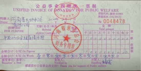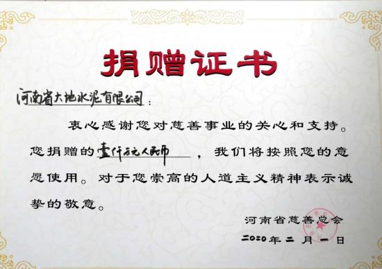 一场突如其来的新型冠状病毒感染的肺炎疫情,打乱了我们正常的生活节凑,新型冠状病毒感染的肺炎疫情还在全国火速蔓延,防疫防控进入关键决战时期,疫情就是命令,责任重于泰山。作为国家大型企业,河南省大地集团于2月1日向河南省慈善总会定向捐赠1000万元,用于平顶山市以及宝丰县的疫情防控工作。 随着新型冠状病毒感染的肺炎疫情蔓延,1月26日,河南省慈善总会紧急启动“防控疫情 共克时艰”慈善项目,同时开展线上线下公开募捐。齐心协力,防控疫情!星空网页版·官方站在线登入积极响应河南省慈善总会的募捐活动,并高度关注新型冠状病毒感染的肺炎疫情防控工作,全力支持配合疫情防控工作,主动捐助定向资金1000万元人民币。这笔捐款将支援平顶山市和宝丰县的疫情防控工作,用于采购短缺的医疗设备及物资,以及对一线医护人员生活工作条件的改善等,助力早日打赢这场没有硝烟的战役。 河南省大地水泥有限公司位于河南省宝丰县,属国家大型企业,组建于2006年5月,现有员工3000多人。近年来,星空网页版·官方站在线登入在张彪董事长带领下,全体干部职工团结一致,抢抓机遇,自我加压,坚持绿色发展、多元发展理念,不断壮大,目前已成为一家集建材、发电、酿酒、房地产、文化传媒、酒店、物流为一体的大型企业集团。先后荣获“全国消费者信得过诚信单位” 、“中国水泥熟料产能百强”、平顶山市“星级纳税企业”等30多项荣誉称号。连续12年荣获宝丰县企业纳税首位,2019年共计纳税2.8亿元。通过了质量、环境、职业健康、能源管理四体系认证。 该集团负责人表示:作为一家本土企业,我们深深的感到家乡的厚爱和哺育之情。以感恩之心回报社会是大地集团多年坚持的初心,无论是扶贫、助困还是社会公益,发挥企业应有的担当和社会责任是每个企业应有的义务。我们在做好大地集团疫情防控工作的同时,大力支援全市、全县疫情防控阻击战也是我们应有的担当。