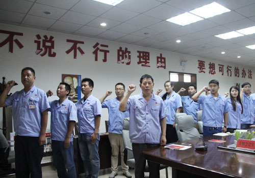 “我志愿加入中国共产党,拥护党的纲领,遵守党的章程……”7月19日下午,大地集团接收新党员宣誓仪式在中控三楼会议室举行,来自集团各党支部的30多名新老党员参加宣誓仪式。集团党委副书记闫中安出席。 宣誓仪式在雄壮的《国际歌》声中开始,现场气氛热烈而严肃。30多名新老党员列队整齐,面向鲜艳的党旗,纷纷举起右手,新党员庄严宣誓,老党员重温誓言,充分表达了大家为党的事业奋斗终身的决心和愿望。 新党员代表张艳乐作了表态发言,老党员代表王永普对新党员的加入表示祝贺!党委副书记闫中安作了总结讲话,并对新党员提出殷切的期望,他希望新党员要永远记住今天这个光荣的日子,牢记党的誓言,履行党的职责,切实把为共产主义奋斗终身的这句誓言,落实到具体工作中去,以实际行动去践行一名共产党员的光荣使命。