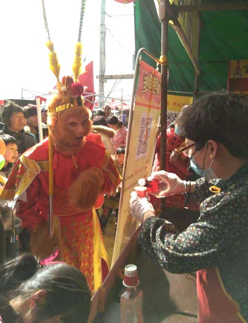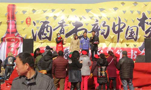 在通往会场的主干道上,跨路挂起的460只刻有“富平春”的大红灯笼格外引人注目,为书会增添了喜庆欢乐的气氛。随着人群,笔者来到会场中心的说书现场,刚好碰上富平春酒业的领导正在为各个说书摊点免费发放F系列酒,这是富平酒业推出的又一献情活动,成为今年马街书会的又一大亮点。无酒不成书,诗酒趁年华,广大说书艺人以酒助兴,在说唱的间隙,酌一杯美酒下肚,那感觉就像李白斗酒诗百篇,说唱起来妙语连珠,栩栩如生,如潮水一般奔腾倾泻,幽默风趣,引人入胜。