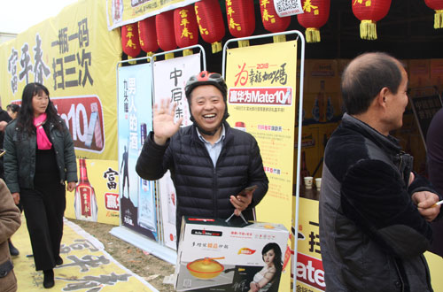 在刘兰芳艺术馆对面富平春宣传主场,更是人山人海,摩肩接踵,品酒的扫码的领奖的,那火爆场面真是嗨翻天,不时传出主持人宣布中奖的消息,引来一波又一波的群众围观,“哇塞!我中了一个黄金锅,赶快发朋友圈”“富平春喝着真美”“富平春,我爱你”不时听到现场朋友的欢呼声。在赶会游玩的同时,随便拿手机扫一下,就能中得实实在在的大奖,那是怎样的一种心情激动高兴感恩……,怎一个“乐”字了得!