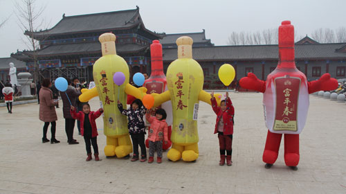 随着涌动的人潮,笔者来到书会现场,沿路两旁挂满了富平春的彩色吊旗和大红气球,把会场装扮得格外热烈和喜庆。会场中间摆满了贾湖酒业义务为广大商和艺人搭建的暖心帐篷。更引人注目的那招人喜爱的瓶模,穿着不同色彩,不同形状的衣服分散在会场各个角落,并不时地与大家握手互动,引得群众与之合影留念,更是惹得小朋友们欢欣不已更为给力的是那神奇惊险的大巴悬浮超人不时与现场群众争相留影互动。