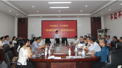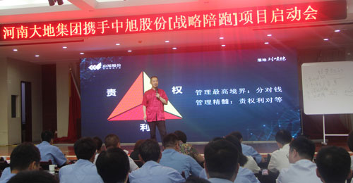 中旭股份本着“顶级资源成就顶级企业”的原则,在董事长王笑菲的带领下,由中旭股份总裁雷志平、前海梧桐董事长谢闻栗、财智东方董事长武学东、经邦咨询董事长薛中行组成的首席教练团,前海梧桐董事总经理刘思宏、财智东方高级管理顾问刘炳贤、经邦咨询总监张庆西组成的顾问团,中旭股份内训兼战略陪跑事业部总经理岳静、中旭股份河南分公司总经理赵景春、中旭股份河南分公司客户总监贾晶晶组成的后台技术团莅临大地集团,先后深入建材、酒业、地产三大板块进行深入考察,并与集团公司高层领导座谈交流,详细了解企业生产经营情况,深入剖析企业在实施目标与绩效管理系统中面临的问题和困惑,为大地集团量身定做战略发展规划,提供专业价值服务。